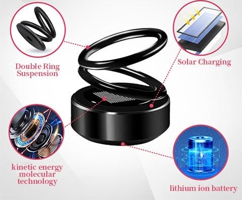 “Stay refreshed on the go with the Solar Power Car Aroma diffuser. Powered by sunlight, this eco-friendly device rotates silently, releasing a pleasant fragrance that keeps your car smelling fresh and clean. Its sleek design and solar-powered mechanism make it both stylish and sustainable—no need for batteries or charging!”